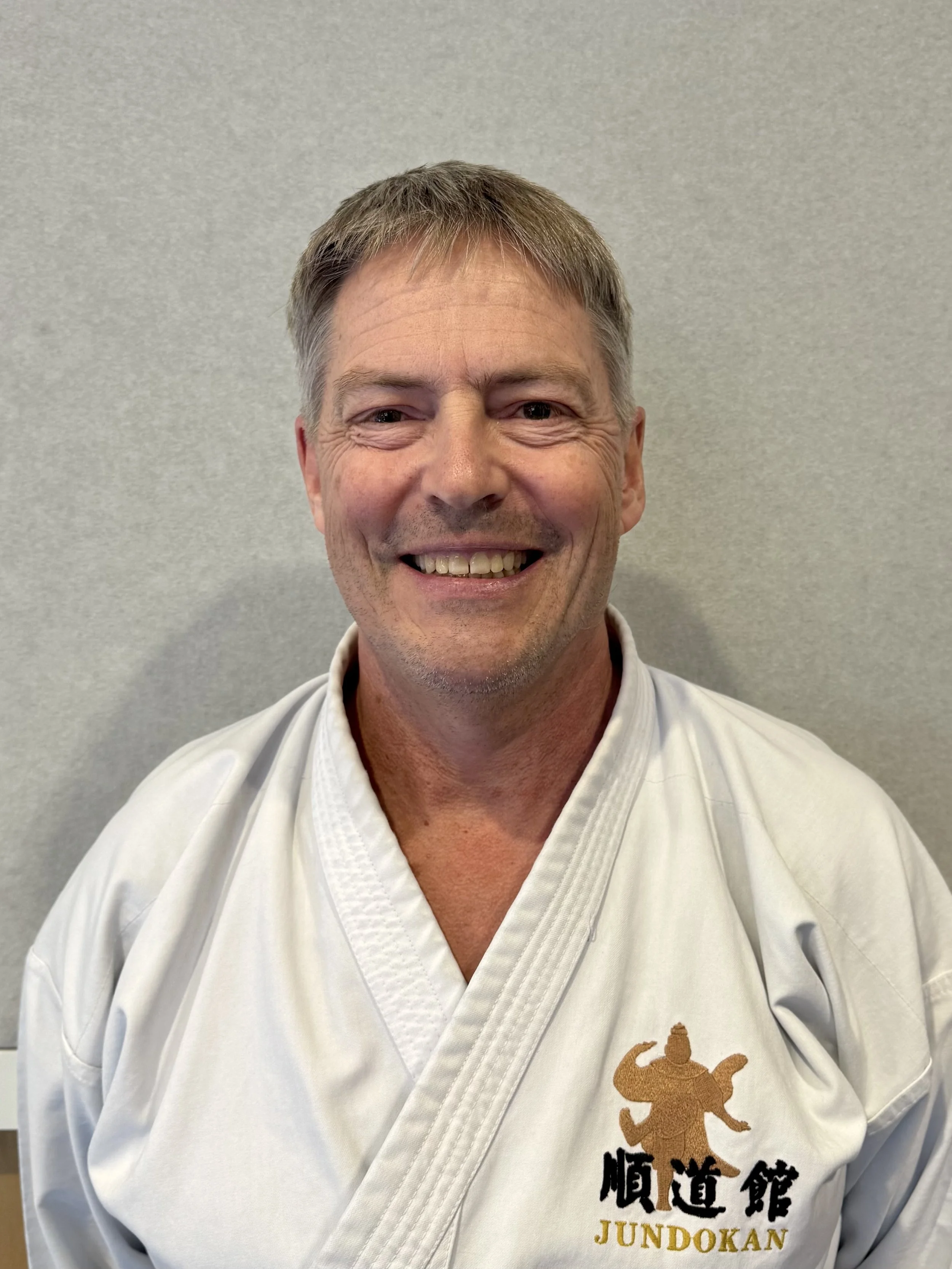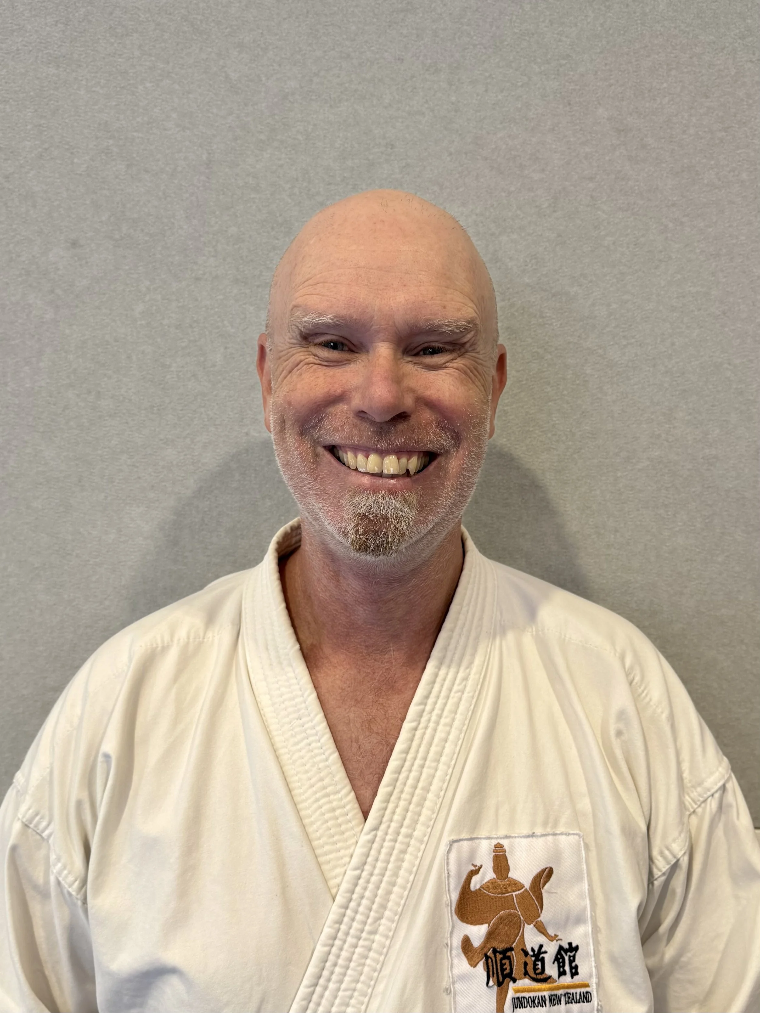 Paul started Shotokan karate with SEKU in England with Senseis Dave Hazard and Mick Dewey in 1983, training for 4 years. After taking a break, he gained Shodan in 1995 in NZ, and Nidan in 1998 with JKA and JKS. Upon moving to Nelson from Auckland, he trained with Andrew Paxton and started with Sensei Paul Allott and the Jundokan in 2012. He gained Sandan in 2013, and on a visit to the Jundokan So-Honbu dojo in Okinawa, he was awarded Yondan in 2023. He continues to train in Blenheim, Westport, and Nelson. He would like to extend many thanks to all his teachers, most of all Sensei David Low.